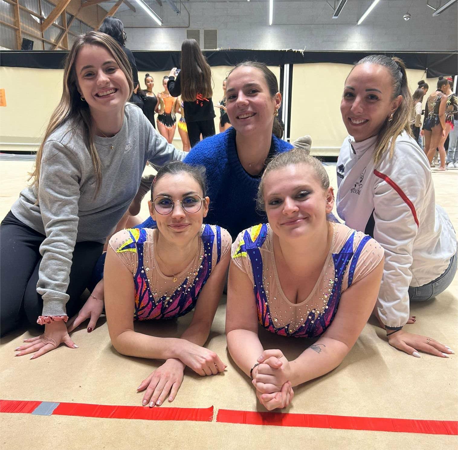 Les gyms présenteront 1 ou 2 enchainements en fonction de leur niveau. Elles participeront à 2 compétitions dont une qualificative pour le Championnat National .